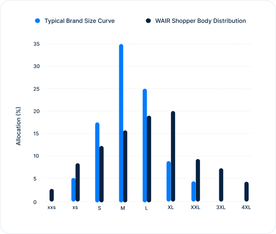 Traditional Size Curve vs WAIR Shopper Body Distribution