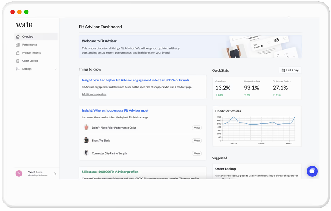 WAIR BI is a "Body Intelligence Layer" that sits across your entire organization. By capturing the precise physical geometry of every shopper who interacts with your site, we provide a single source of truth for Design, Marketing, and Operations.
