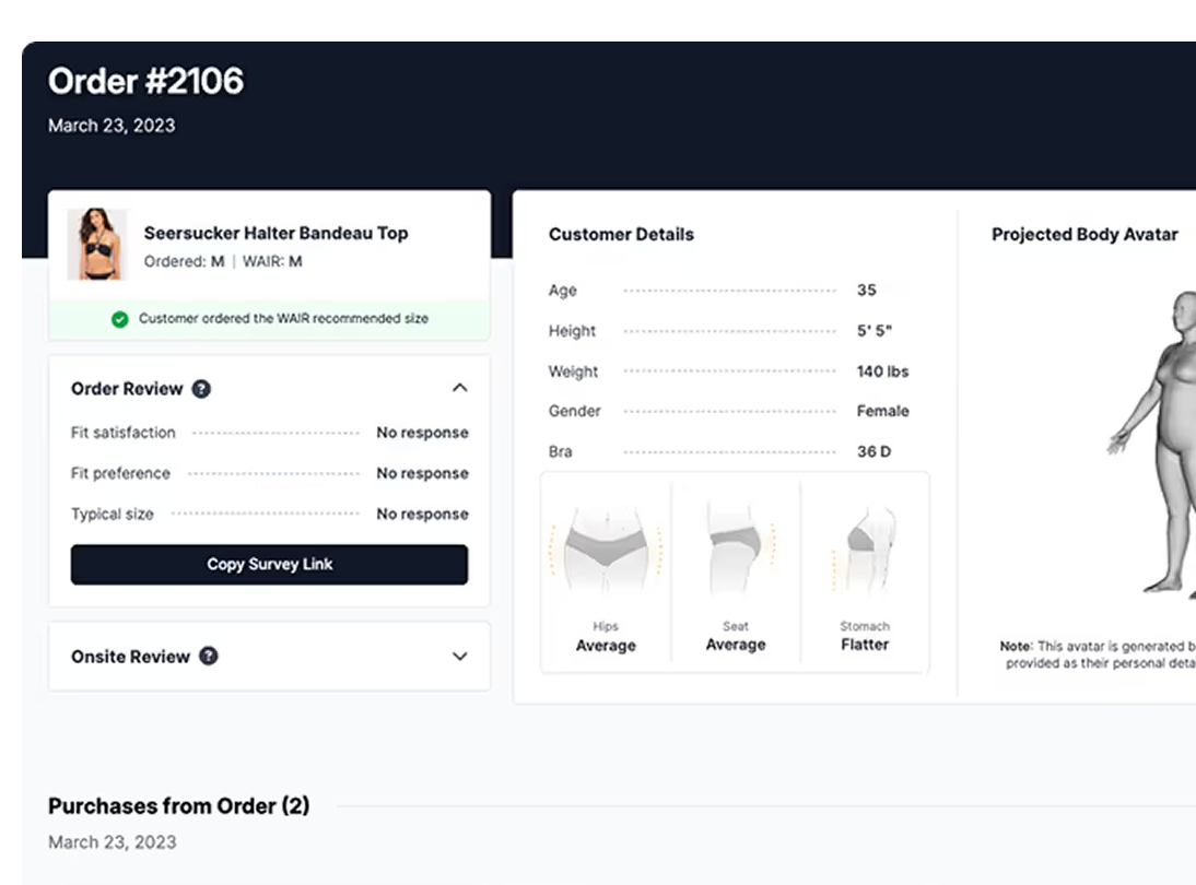 WAIR Body Intelligence (BI) is a first-of-its-kind platform that interweaves 5 million+ 3D body scans with the real-time anatomical profiles of your specific shoppers. Stop guessing who your customers